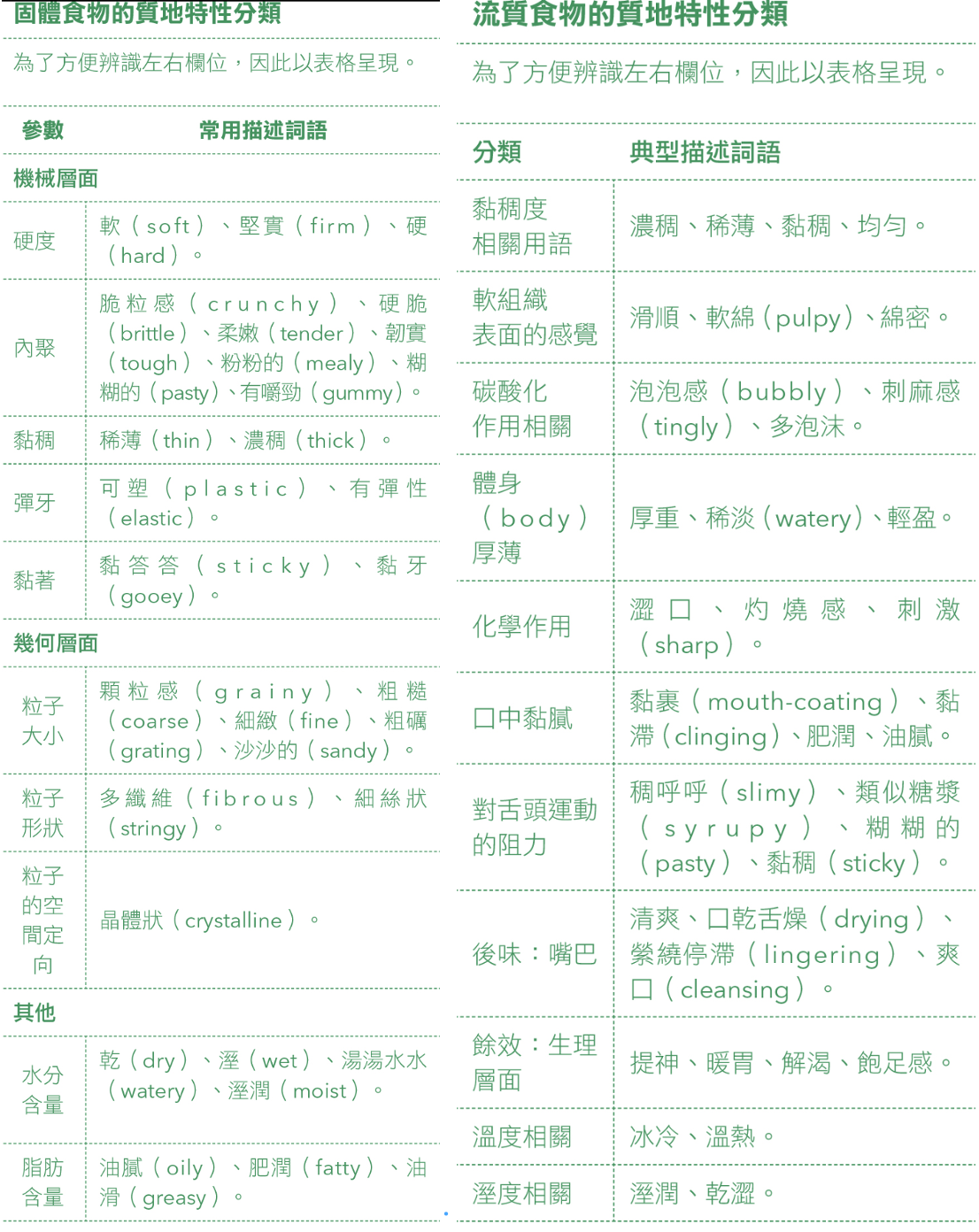 The image below is from the book “The Science of Texture,” where we can see how Westerners like to “foolishly” use “scientific” methods of classification and definition. For example, “al dente” refers to the rate at which food returns to its original shape after being deformed by the pressure of teeth.